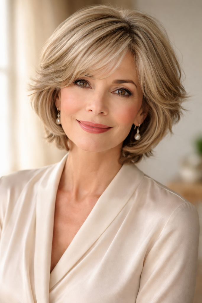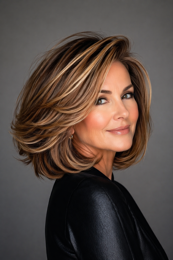 The voluminous blowout bob is all about body, bounce, and elegance. It gives a luxurious feel while making hair look thicker and healthier. This style is perfect for women over 50 who want a glamorous, salon-finished appearance.